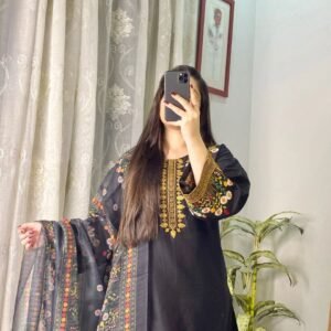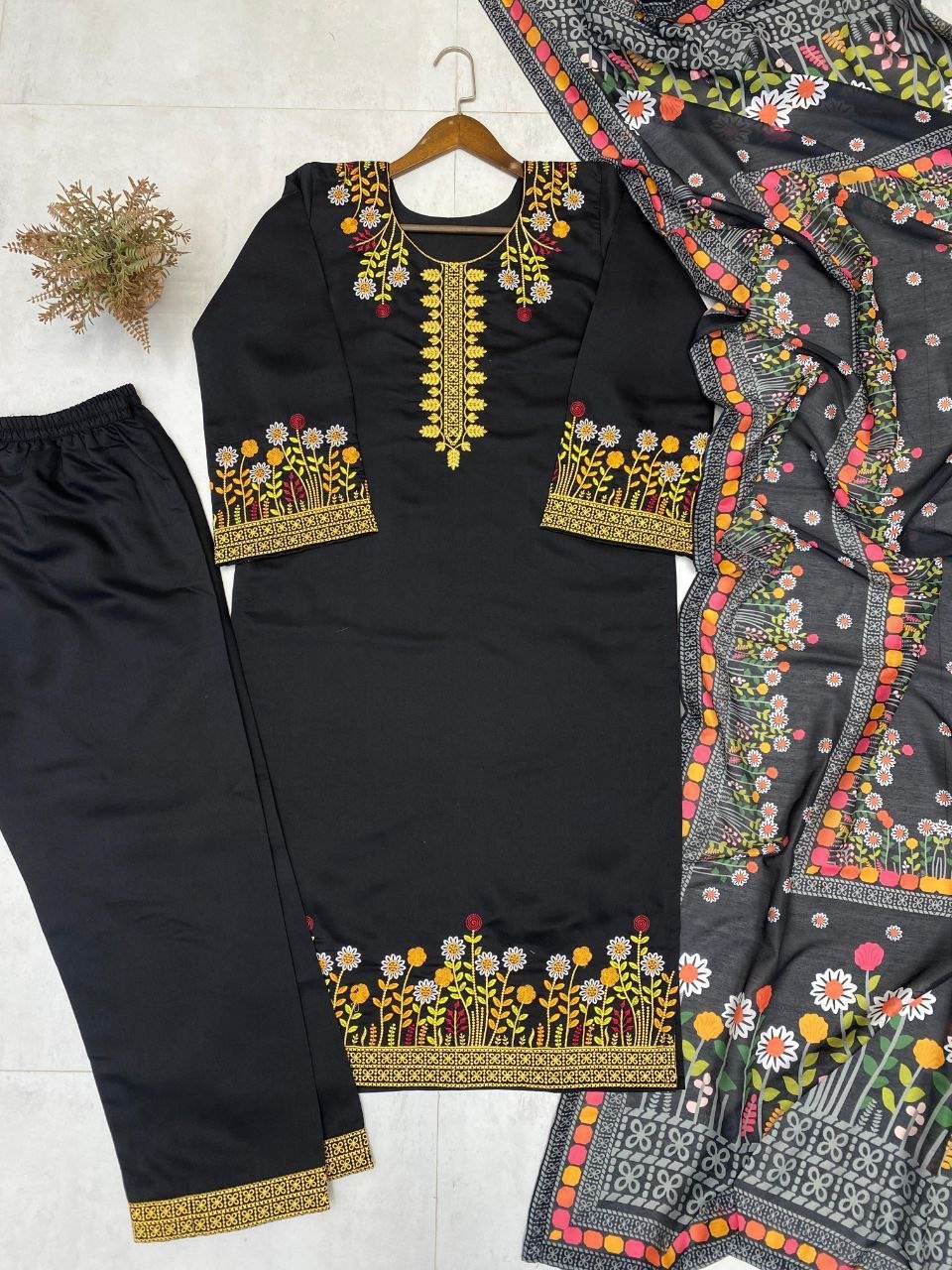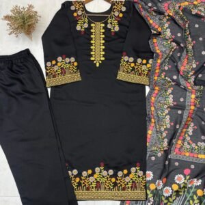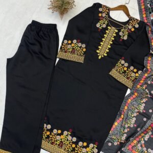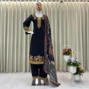 Turn heads with this exclusive designer embroidered top and palazzo set from Teevanaa. Crafted from luxurious Roman silk, the top features elegant embroidery work, paired with a soft micro inner for added comfort. The matching embroidered palazzo comes fully stitched in a free size, offering both style and ease. A lightweight Mal cotton dupatta with a subtle print completes the look beautifully. Perfect for festive events, parties, or elegant gatherings, this ensemble blends tradition with a modern flair. Add this timeless piece to your wardrobe and make every occasion special.