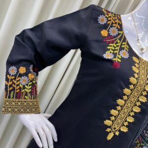 Top: Premium Roman Silk with intricate embroidery, soft micro inner, 45″ length. Sizes: M (38″), L (40″), XL (42″), XXL (44″)