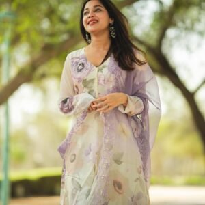 Introducing the Ethereal Bloom Organza Digital Floral Salwar Kameez Set, a stunning ensemble that blends modern artistry with timeless traditional charm. Crafted from lightweight organza fabric, this outfit features vivid digital floral prints that exude freshness and sophistication.