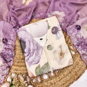 Experience elegance redefined with the Ethereal Bloom Organza Salwar Kameez Set — featuring vibrant digital floral prints, shimmering stone work, and a beautifully embroidered dupatta. Perfect for festive occasions and special gatherings.