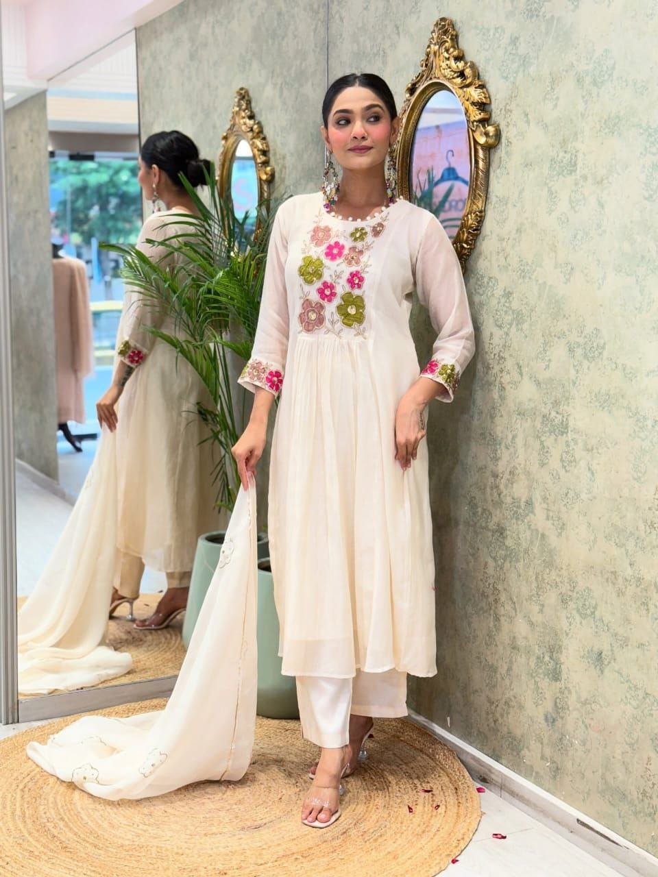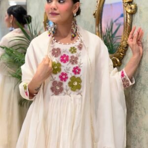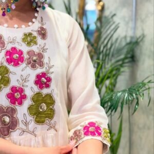 Celebrate this festive season in style with our elegant and timeless kurti set, crafted to bring together comfort and sophistication.