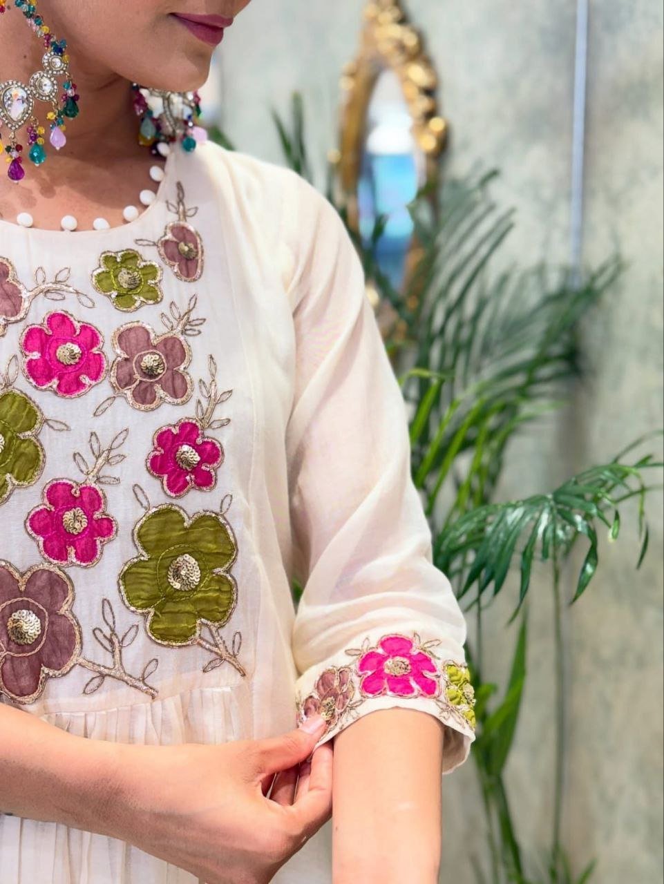 Design Details: Intricate embroidery on the neckline and sleeves, adding charm to your festive look.