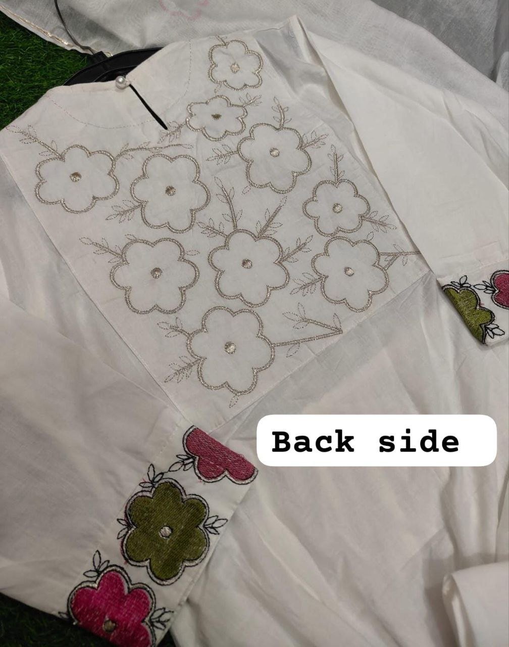 Top: Heavy quality cotton fabric with full malmal cotton lining and exquisite embroidery on both front and back.