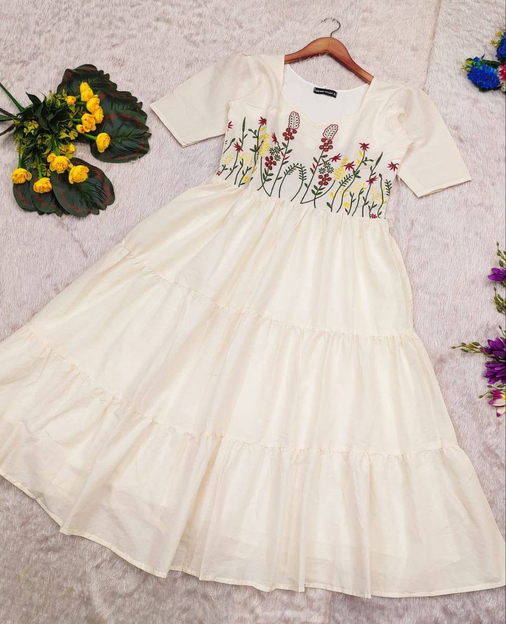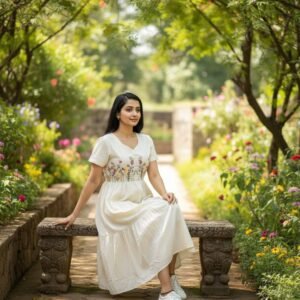Step into the season with elegance and comfort in our Leche Dress, a perfect blend of style and ease. Crafted from soft Cora Cotton, this beautiful maxi dress is designed with intricate patch embroidery work, adding a touch of sophistication. With its flattering 47″ length and short sleeves, this dress is both chic and breathable, making it an ideal choice for any occasion. Fully lined for added comfort and style, this dress ensures a perfect fit and effortless grace as you embrace the joy of dressing!