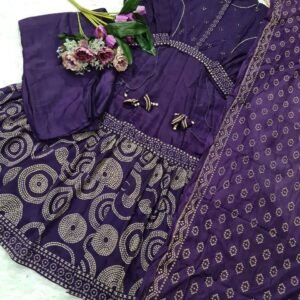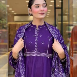 Elevate your ethnic wardrobe with this Women’s Premium Muslin Cotton Embroidered Khadi Printed Gown Set, a perfect blend of traditional charm and modern elegance. Crafted from high-quality Muslin Cotton, the gown features exquisite sequence embroidery work that adds a touch of shimmer and sophistication. The Chanderi Cotton dupatta with intricate Khadi work beautifully complements the outfit, giving it a rich and graceful look.