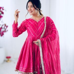 Step out in style with this fully stitched, ready‑to‑wear 3‑piece set made from luxurious Mal Chanderi fabric.