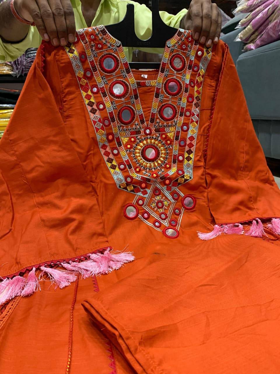 Bright, bold, and beautiful — the Tangerine Glow Cord Set is your go-to for festive flair and effortless comfort. With intricate embroidery, mirror accents, and tassel details, this ensemble is made to make you shine.
